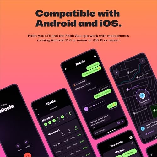 IN-APP CALLS & MESSAGES WITHOUT A PHONE NUMBER – Stay connected and add up to 20 contacts (ages 13 and up) for them to call and message with; Works with most Android 11.0 or newer or iOS 16 or newer[20,21,22]; Google account and Fitbit Ace app required.