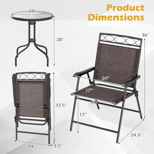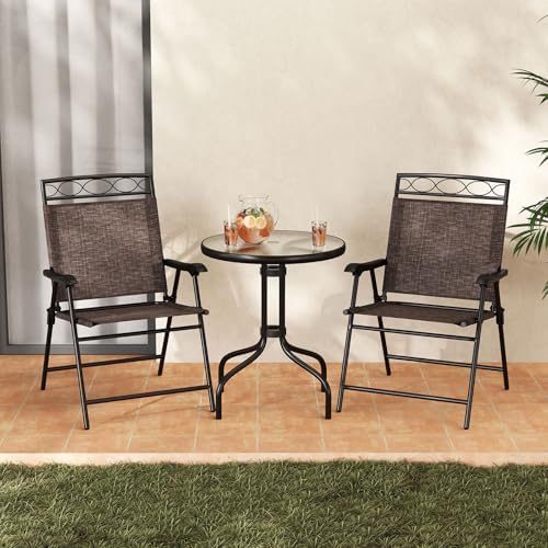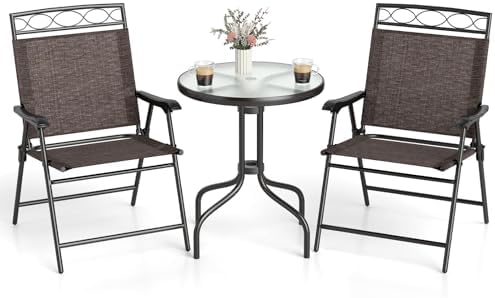 Convenient Folding Chairs: The patio set includes 2 lightweight (9.5 lbs each) foldable chairs, designed for easy storage and mobility. What’s more, the chairs are equipped with fixing buckles to secure them when unfolded, ensuring a hassle-free user experience.