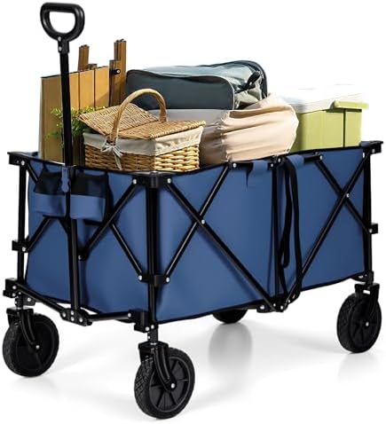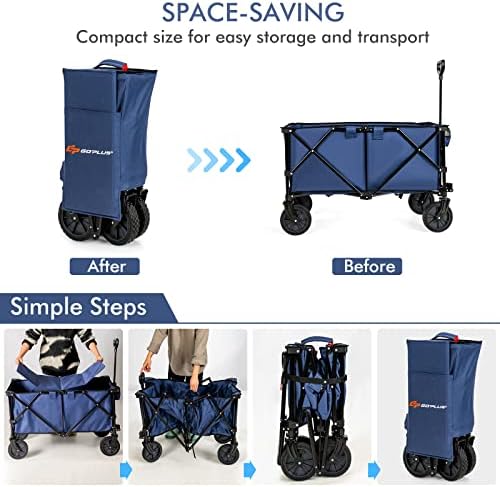 【Large Capacity】The collapsible wagon is a good helper for transporting and storing some large items. With 7.5cu.ft roomy storage space, our utility wagon can carry sports equipments, tools, plants and other large item. The double-mesh front pockets also can hold the cups and drinks, or tools like pruning shears, hand shovels, or other small items.