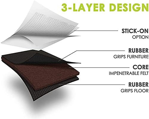 Puncture proof 3 layer design – Gorillapads anti slip furniture pads feature a specially formulated anti slipping rubber outer layer that provides maximum grip between both furniture and floor and have a puncture proof 1/5 inch thick solid felt core (these rubber pads are roughly 1/3” thick).