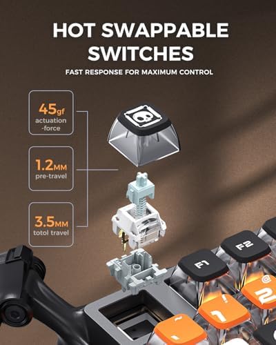 ⚒️ Futuristic Design & Premium Build – The Mercury K1 Pro features a unique, finish with a sturdy aluminum alloy frame, combining durability and portability. Its skeletal frame design not only looks stunning but also stabilizes every keystroke, making it a perfect blend of art and functionality.