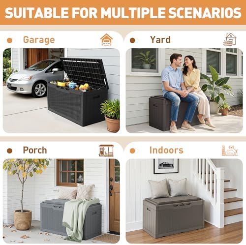 EXTRA CUSHION:Besides helping you to organize your space, the deck box is equipped with a removable thick cushion, you can also use it as a stool to ensure your safety when opening and closing the box.