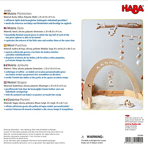 Made in Germany from beech wood from sustainable forestry and treated with non toxic, water based stains. This mobile is suitable for ages 6 months and up.