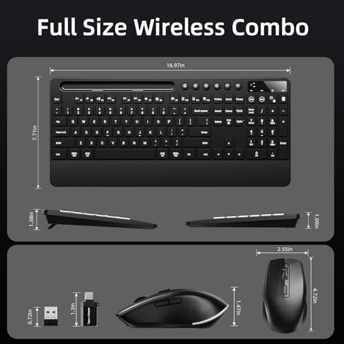 Comfortable Ergonomic Design: The palm rest supports your hands to reduce typing fatigue during extended sessions. Customize your typing angle with the adjustable tilt stand, finding your comfortable wrist position. Paired with the contoured mouse that naturally fits your palm, this keyboard and mouse delivers complete comfort whether you’re working, gaming for hours.