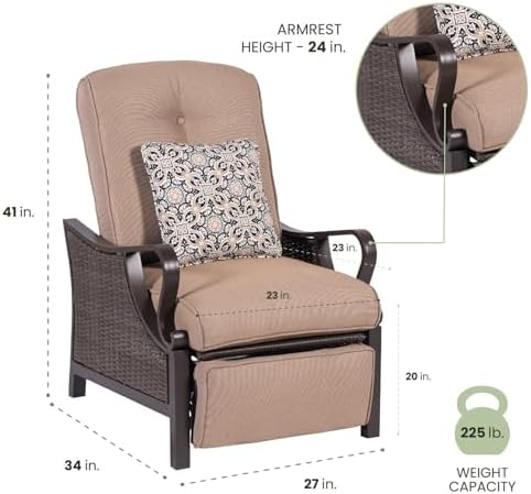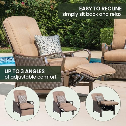 Hanover Ventura Outdoor Recliner in Tan, Outdoor Recliner Chair for Porch, Deck, Pool, Lounge Chairs for Outside Seating