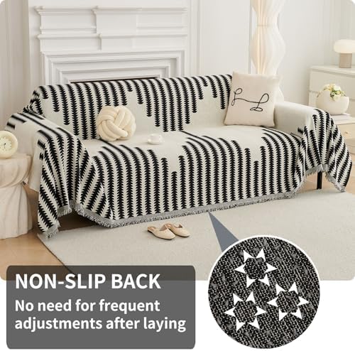 EXCELLENT ANTI-SLIP: Our non-slip couch cover blanket are made with non-slip granule technology on the reverse side, which allows sofa cover blanket to fit snugly on the surface of the sofa and fit the sofa perfectly without shifting due to people or pets sitting or lying down. Once laid, our couch blanket cover do not need to be adjusted frequently, so that every moment of your home life is immersed in convenience and comfort.
