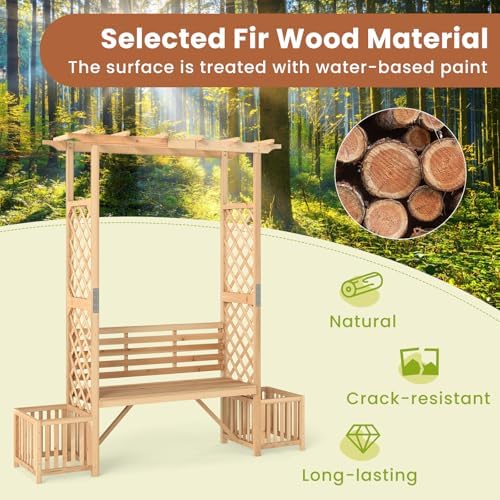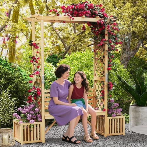 Cozy Wooden Bench: Equipped with a 2-seat wooden bench, this bench arbor arch with pergola offer a cozy spot for leisure and talking. It features a ventilated slatted seat and wide backrest for a comfy seat, and the seat load capacity is 660 lbs.