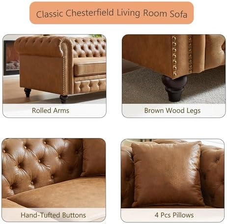 👑 Classic Chesterfield Design: Timeless rolled arms, hand-tufted buttons, and rich brown wooden legs deliver vintage charm with modern comfort, perfect for traditional or contemporary decor.