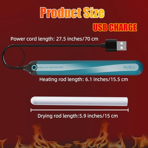 [360° Integrated Body] The heating rod measures 5.3 inches in length and comes with a 28.5-inch USB charging cable. Featuring a built-in spiral heating core, it delivers 360° dead-angle-free heating for greater efficiency.
