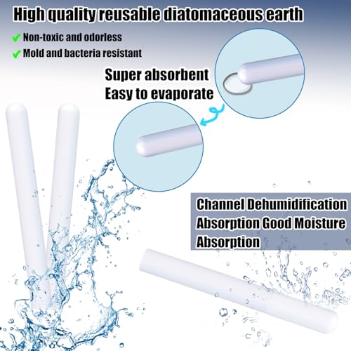 [2 Moisture-Absorbing Drying Sticks] Crafted from refined mineral diatomaceous earth, these sticks rapidly absorb residual moisture and impurities. For storage, place them alongside your items in the included storage pouch for maintenance. After use, moisture will naturally evaporate, allowing for repeated use.