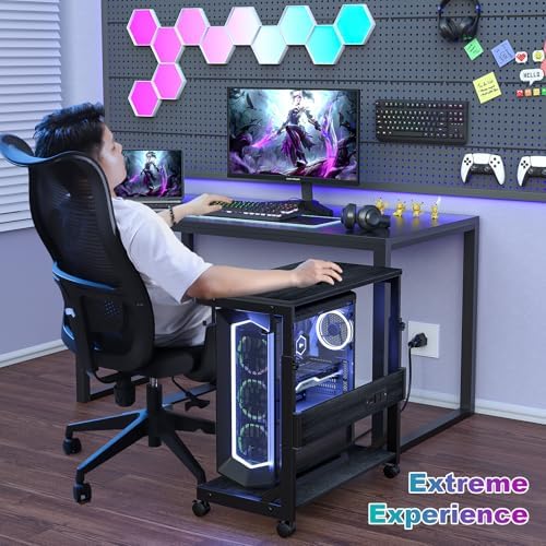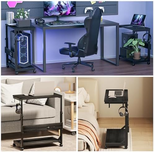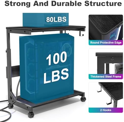 Pc Tower Stand With Charging Station: This Mobile PC Standing with dual 120V/12A outlets and dual USB ports can power your laptop, smartphone, printer, tablet or any electronic device. Great for keeping an organized workspace. Plus, the PC Tower Rack doubles as a side table to provide additional power for your desk lamp