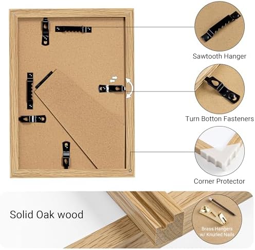 Strong HD tempered glass – This oak wood picture frame comes with sturdy 2.0mm tempered glass front, our glass with edge polished that protect you from scratching by sharp glass edges . The biggest advantage of tempered glass is that it is safe and not easy to break