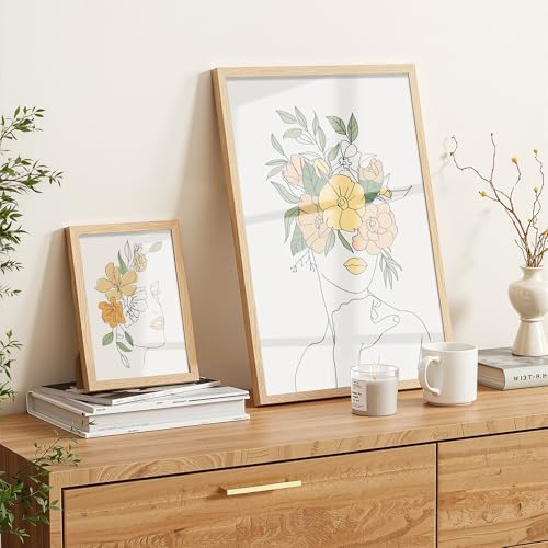 Multi-functional design-This oak wood picture frame can be hung horizontally or vertically to fit your available space and can also stand independently on a desk. Use our natural oak poster frame to display your drawings, posters, diplomas, artworks, and art prints to create a stylish and cohesive memory wall