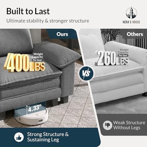 Spacious Cloud Couch Design: With extra-wide, deep seats that support your entire body, this large family sofa comfortably fits everyone for cozy movie nights and gatherings