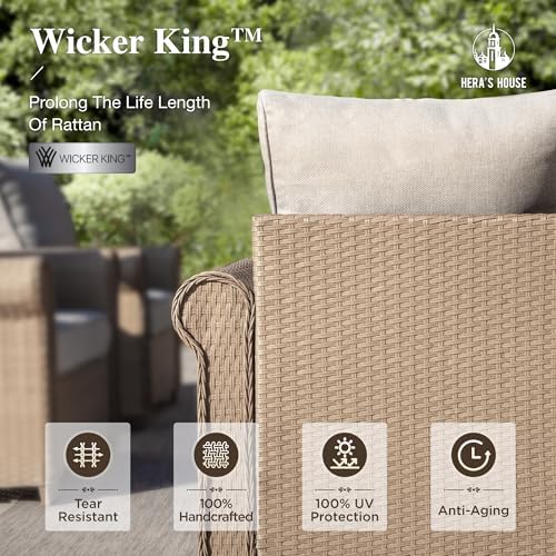【Durable & All Weather Resistant】WICKER KING high quality rattan which will not fade or dry out. This technology is made of 100% hand woven weather resistant PE willow branches. Ensure that your furniture remains vibrant and long-lasting in all seasons.