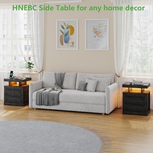 【3-IN-1 Charging Station】HNEBC end table has a wireless/USB/type-c charging station, to meet the charging needs of your different electronic products.