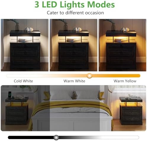 【With LED Lights】This smart LED bedside table has 3 colors of lights: white/blue/yellow, you can adjust the color and brightness according to your needs.