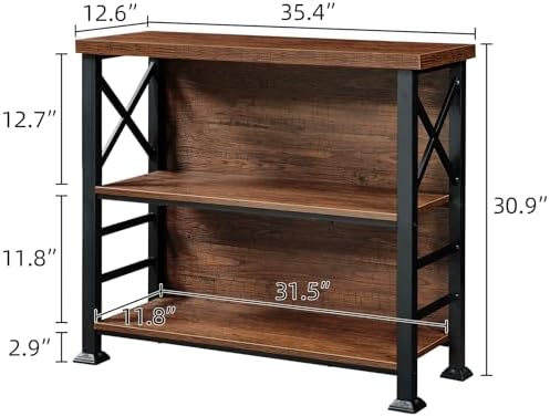 Generous Storage Space:Dimensions 35.4” Wx12.6”Dx30.9” H.The height between the layers is 12.7 “and 11.8” respectively.So This 3 tier bookshelf can provide enough space to meet your daily storage needs. The 3 tier open shelves allow you to make the most of the space. Whether it is displaying books, CDS, collectibles, photos, toys, crafts, it will make your room elegant, simple, and organized.