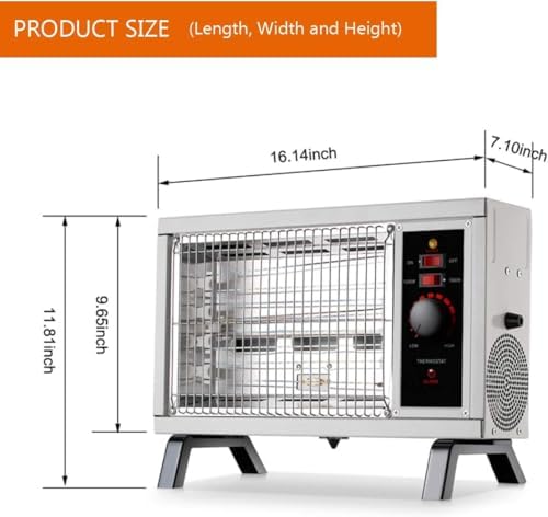 【SMALL & PORTABLE HEATER】Dimensions: 16.1 in W x 7.1 in D x 9.6 in H. Build-in carry handle, and lightweight (4.1Ibs) makes this radiant heater easy to be place in any room. No more concern about taking up too much space in a crowded place. A perfect indoor space heater for office and a thoughtful gift for your family & friends to meet the freezing winter.