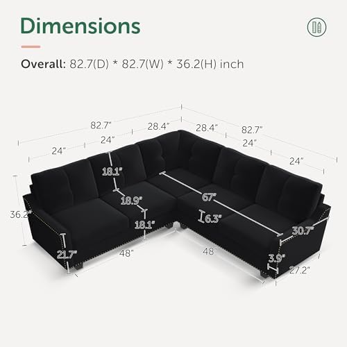 Dimensions: Overall Sectional(D x W x H): 82.7 x 82.7x 36.2 inches. Weight Capacity: 1488 lbs