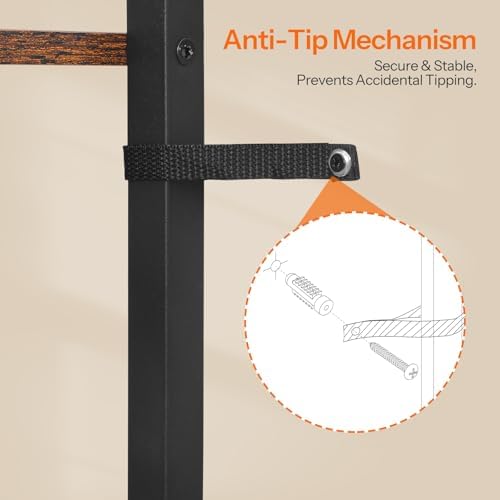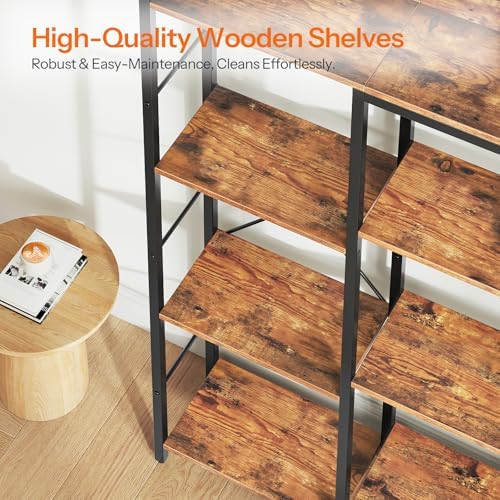 Sturdy and Safe: Made of high-quality particleboard and a sturdy metal frame, this industrial bookshelf comes with an X-shaped reinforcement and an anti-tip kit on the back, which provides extra stability to protect the items you display and is convenient for you to fix it to the wall. Each shelf can bear up to 44 pounds