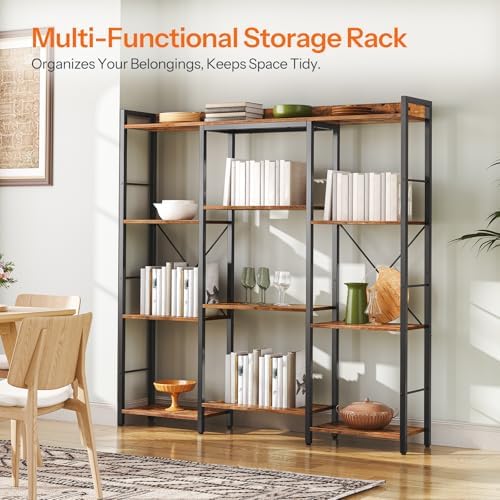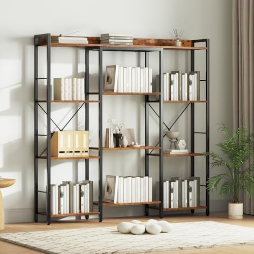 Three-Column Multifunctional Bookshelf: With 10 open storage shelves, This triple wide bookshelf features a 4-tier, 3-column design, provides ample space to store books, photo albums, alarm clocks, potted plants, and various decorations. Everything finds its rightful place, keeping your belongings organized and within reach