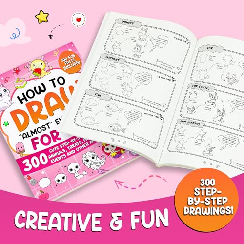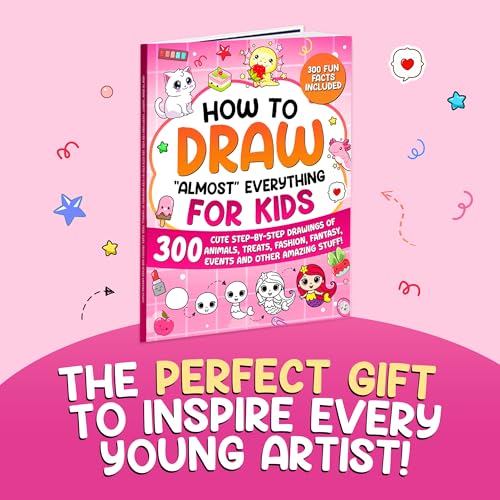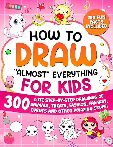Get ready to dive into a world of creativity with How to Draw “Almost” Everything for Kids! This exciting guide features 300 cute step-by-step drawings, making it easy for kids to draw everything from adorable animals to fashionable outfits and tasty treats. Each drawing comes with fun and interesting facts that make learning even more enjoyable! Whether your child loves drawing fashion or magical creatures, this book has something for everyone.