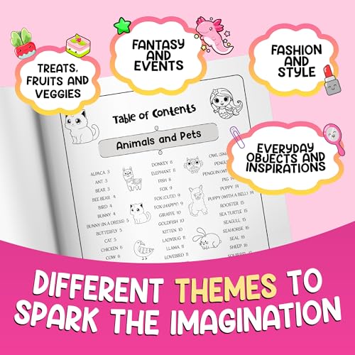 Animals, both real and imaginary, with cool facts about their habitats and behaviors.Delicious treats like cupcakes, donuts, and smoothies—find out what makes each one special!Trendy outfits and fashion accessories, with fun facts about fashion history.Fantasy creatures, magical settings, and much more to spark the imagination!