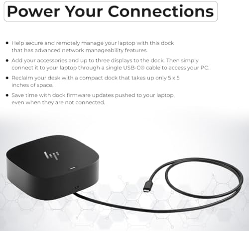 [Universal Compatibility] – Our HP universal docking station is designed for HP and non-HP USB-C, Thunderbolt enabled laptops with a single-cable solution for up to three displays. The compact design saves desk space with advanced network management and efficient firmware updates.