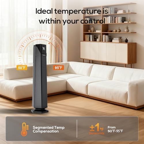 Precise Temperature Control – – Set room temperature with more accuracy than ever before, this space heater with thermostat uses a dedicated thermal sensor to gauge the room temp and adjust heating automatically in ECO Mode, temperature can be set between 50-95°F with 1°F precision for ideal comfort. Up to 50% energy savings, bringing you all-day comfort without worrying about your electricity bills.