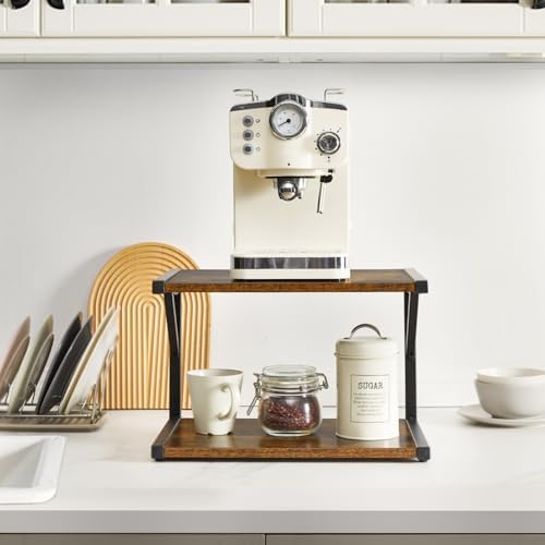 IBUYKE 2-Tier Desktop Printer Stand Holder, Multi-Purpose Desk Organizer Storage Shelf, Book Shelf Printer Shelf for Fax Machine, Scanner, Files, Books, Rustic Brown UTLJ004H
