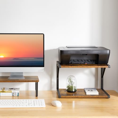 VINTAGE CHARM & ELEGANT STYLE: Rustic and aesthetic wood grain that fits perfectly with the black matt paint makes the double tier printer stand look more elegant and modern while sturdy. It can decorate any scene in the office or home, and perfectly blend with your modern furniture to create beautiful new scenery. This versatile desktop organizer is definitely your ideal choice for home and office.