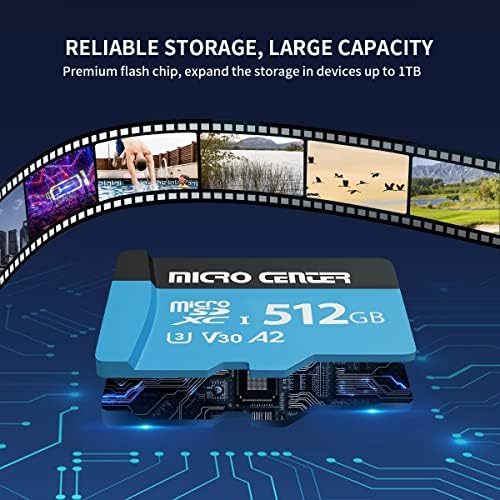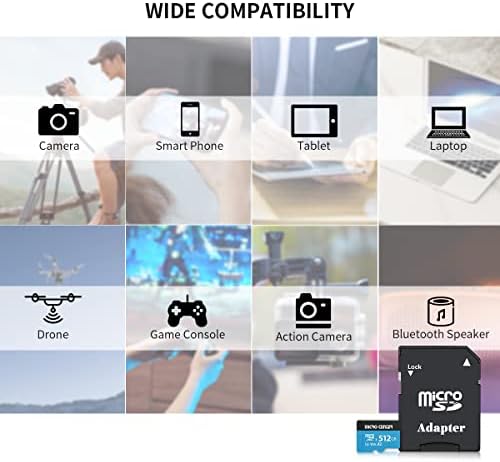 Micro SD Card 512GB. Fast Read/Write Speeds up to: 95MB/s and 85MB/s respectively, allows you to transfer large size high-resolution photos and videos with ease, and capture fast uninterrupted shots. Includes Full-Size adapter for extended use