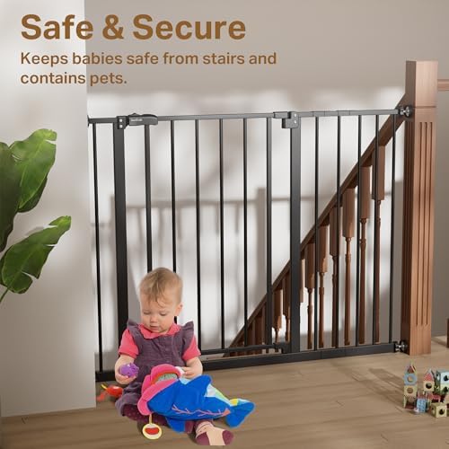 Sturdy Metal & Long-Lasting Use: Durable metal frame with 2.45″ wide safety slats ensures strength, visibility, and reliable protection. Built to handle thousands of daily uses without loosening, providing parents and pet owners long-term safety and peace of mind.
