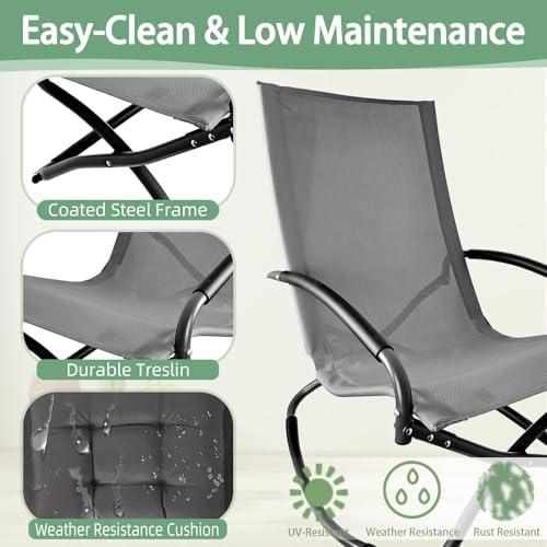 Heavy-Duty 330lbs Capacity – Rock with Confidence: Sturdy steel frame supports all body types, whether you’re reading in the living room, breastfeeding, or relaxing after a hike. Specially designed front stopper prevents over-tilting, making it safer for elderly users, kids, or energetic rockers. Enjoy gentle swings without fear of flipping – perfect for uneven grass, decks, or hard floors
