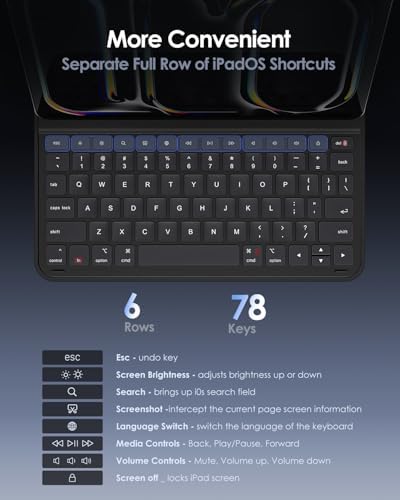 【ULTRA-THIN & COMFORTABLE TYPING WITH SHORTCUTS】 Enjoy a slim, portable folio that adds minimal bulk(only 0.85Ib). The scissor-switch keys offer quiet, responsive, and accurate typing. The top function of our keyboard case for iPad 10th Gen row (14 keys) provides instant access to brightness, media, volume, and screenshot controls – no need for Fn key combos, boosting your productivity.