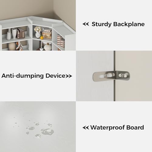 Sturdy Construction: Crafted from high-quality medium-density fiberboard, this Corner bookshelf is designed for durability, ensuring it can withstand the weight of your belongings while featuring an anti-tipping mechanism for added safety. Each shelf can hold up to 80 lbs