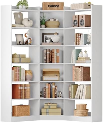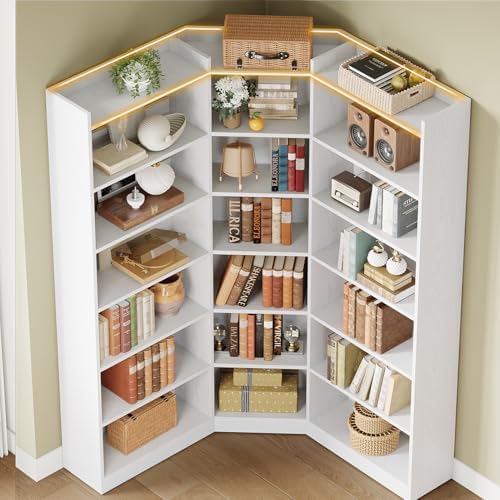 Ample Storage Space: The 7-tier corner shelf provides greater vertical storage and display space for books, accessories, and daily necessities, maximizing space utilization. The back features a baffle design that prevents your beloved items from accidentally falling