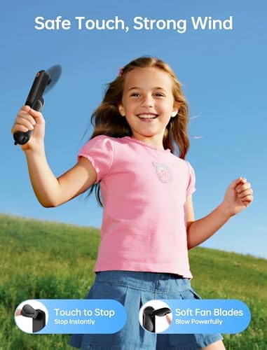 Foldable Design and Mini Size: The folding design makes it easy to be carried and stored. Besides, with the capsule shape(5.1*1.65*1.65 inch, weight: 6.38 OZ), this rechargeable fan can hide the fan blade, small and easy to slide into your pocket and purse.Gifts choice for Christmas & New Year