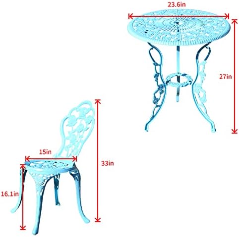 ✔Product Dimensions: Table Dimensions: 23.6″(D) x 27″(H), 1.75″ Diameter Umbrella Hole; Chair Dimensions: 16.1″ D x 15″ W x 33″ H (Chair); Chair Weight Capacity: 220 lbs