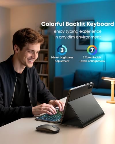 ⌨【Magnetically Detachable Rainbow Backlit Keyboard】Case for iPad Pro 13 (M5 2025) / iPad Pro 13 (M4 2024) 13 inch comes with a removable 7-color rainbow magnetic keyboard. The ultra-thin, lightweight magnetic keyboard attaches securely to the case, helping the tablet stand upright and turning it into a mini laptop in a second. Use the selectable backlight mode to choose your favorite color from 7 iridescent colors for smooth typing in the dark, even when working at night.