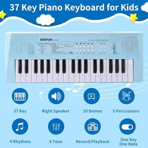 【Perfect Gift for Kids】This kids keyboard piano size is 16.2*6*1.6 Recommended piano keyboard educational Toys for 3 4 5 6 7 8 years old kids, suitable for birthdays, Children’s Day, Christmas, New Year’s Day or other festival as gifts. It is lightweight and easy to carry around,children can use it at any time whether you are traveling or at home. ZuzuBlooploo Kids Music Piano Keyboard 37 Keys Electronic Piano,Provide your kids with a safe and fun piano keyboard!