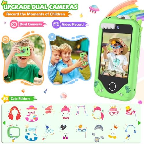 Dual Camera for Cherished Memories: Capture and preserve precious moments with the dual cameras and 20 adorable photo stickers. Children can personalize their photos and videos, fostering creativity and self-expression. It’s not just a kids camera phone—it’s a canvas for self-expression, allowing kids to document their world in a fun and unique way