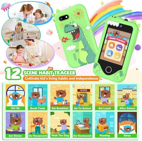 Multifunctional Kids Smart Phone – Our kids phone deeply integrates fun interaction with enlightenment education. Kids can take photos and videos with dual cameras, learn interestingly, cultivate habits, listen to music through MP3 player, bedtime stories, built-in video player, and play games. This kids play phone is ideal for both little boys and girls, it combines entertainment and educational tools to enrich their daily activities