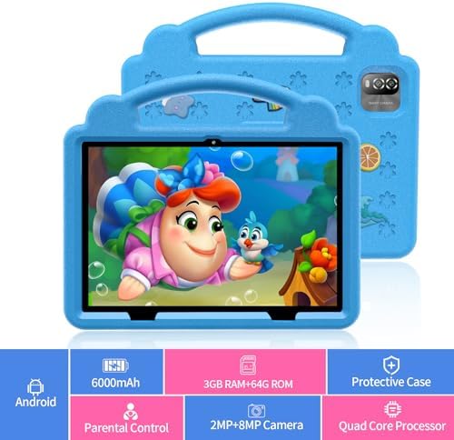 Power and Efficiency: Equipped with a powerful A133 CPU, 3GB RAM, and 64GB ROM, our tablet provides smooth performance and ample storage for apps, games, and media. The 6000mAh battery ensures long-lasting usage, allowing your child to stay engaged and entertained throughout the day. With the Android operating system, your child will enjoy a secure and up-to-date user experience.