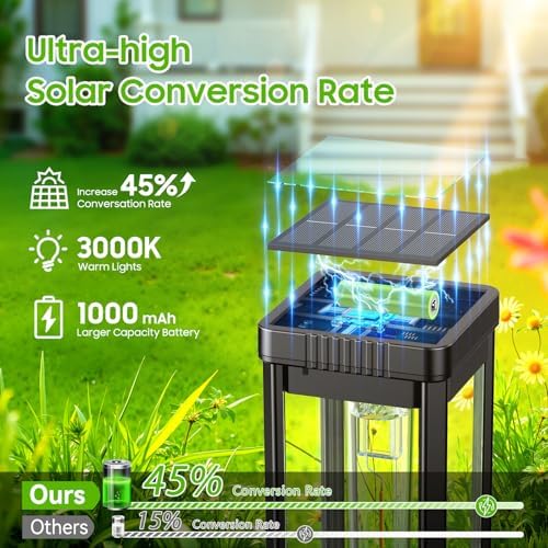 【45% Solar Conversion & 15H Long Lasting】Unlike other solar outdoor lights, our solar lights outdoor pathway use monocrystalline panels (45% efficiency) to hoard sunlight like desert cacti. A 1000mAh battery lets solar garden lights burn from dusk till dawn—10-15 hours straight. From midnight rose-pruning to predawn coffee runs, pathway lights solar powered ensure your path never fades to black. Save on your electric bill while enjoying the pleasant glow of these garden lights solar powered