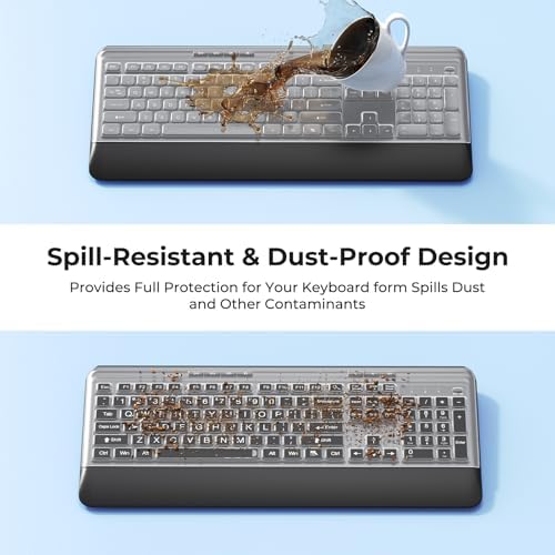 Dual Keyboard Covers Set: Includes clear & large-print silicone skins. Dust/water/spill-proof protection. Bold silk-screened letters enhance visibility.