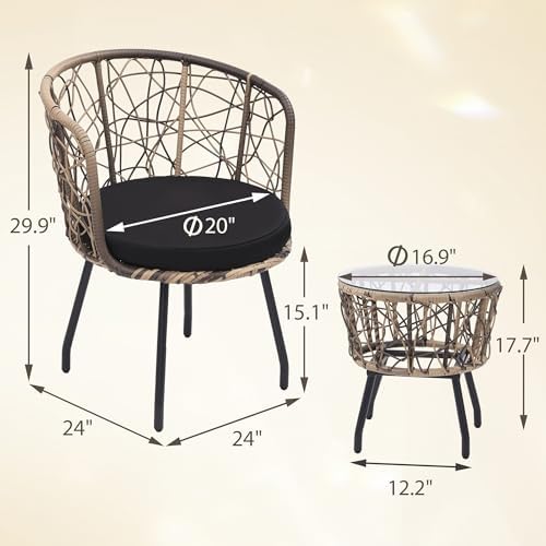 【UNIQUE ITALIAN DESIGN】 This unique boho style is the new creation from our Italian design team. They have created a modern 3 piece patio bistro set which is functional, elegant, modern, and comfortable.