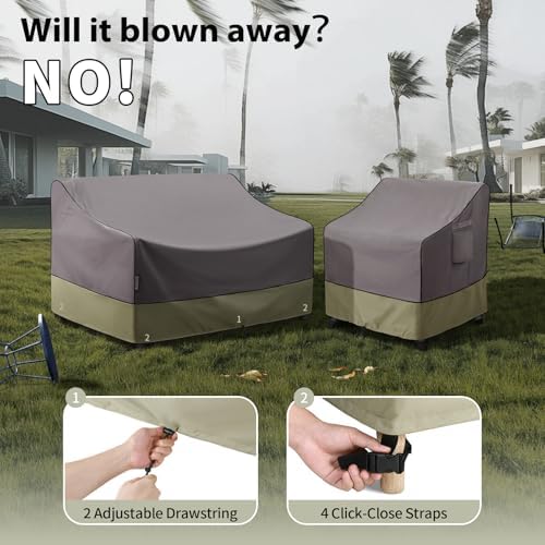 KylinLucky patio sofa cover provides all-weather protection for your sofa. 600D heavy-duty Oxford cloth fabric, tear-resistant and more durable, waterproof, rain-proof, UV-proof, dust-proof and wind-proof, keep your patio sofa clean and dry.Patio furniture covers made of 600D TPE fabrics, has good waterproof, anti-UV, anti-tear effect, comprehensive protection of your patio furniture from wind, sun, rain, snow, dust, bird droppings, leaves, etc.