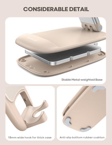 🎁Thick Case Friendly – This cellphone stand work for phone with thick case up to 0.71 inches thick. The enlarged & thickened anti-slip & anti-scratch silicone mats on the backrest, hooks and base feet protect your mobile phone from sliding and scratching. Durable materials and the high-precision smooth surface prevent this phone stand from scratch and break even after long-term use.